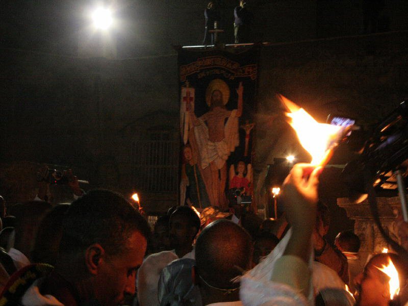 今年はカトリックとオーソドックスの復活祭が同じ日でした。使用している暦が違うので例年ではオーソドックスは、ほぼ、ひと月遅れで、復活祭となります。それに、ユダヤ教の過ぎ越し祭が4月3日でした。そのため、この一週間、近郊からのイスラム・パレステイナ人はブロックされ、エルサレム旧市街に入れなかったと聞きました。![]() キリスト復活大聖堂では、慣習により、聖なる三日間は典礼時間でオーソドックスを配慮しますが、カトリックが優先的にお墓前を使います。 たとえば、聖木曜日では「聖香油のミサ」と「最後の晩餐の記念のミサ」を一つにして、午前中に済ませます。昼前には司教や聖職者たちは退出します。そして、大聖堂は閉ざされます。午後三時前、祭儀のため、聖職者たちが入堂しますが、すぐ閉ざされます。午後五時前、聖職者たちが退出すると、また、閉ざされ、午後8時、数分間、礼拝者の入堂のため開きますが、翌朝7時まで、主の死を偲んでの聖時間となります。このような時間割のため、この日だけは、内部の 私たちは外出を控えます。聖土曜日はイスラエル警官により大聖堂入堂が厳しく規制されました。イスラエル警察が発行したカードがなければ、入堂で出来ませんでした。午前6時半になり、祭儀に参加する聖職者たちや信者の入堂が緩和されました。このため、30分ぐらい遅れて、復活徹夜祭が始まりました。そうです。日没後行うことになっている復活徹夜祭を午前中に済ますのです。日本時間午後3時、アレルヤを歌いました。10時にはカトリック聖職者たちは退出します。そして、オーソドックスの「火の祭儀」となります。 |